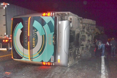 tensão foi num ônibus leito da Viação Camurujipe, que tombou na