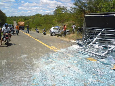 carregado com vidro bateu em um carro de passeio. As informações são da
