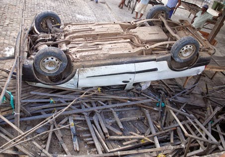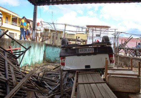 Por voltas das 8h desta quarta-feira, 06 de agosto de 2014, um Fiat Strada, de cor banca, placa GYR-8058, de Baixa Grande, capotou na área coberta do mercado de farinha.