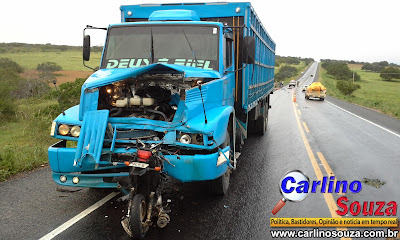 Um grave acidente entre uma moto e um caminhão boiadeiro terminou