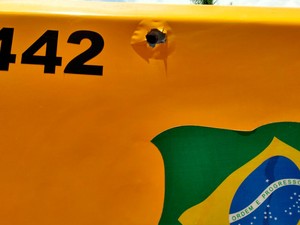 Eles atiraram na direção do veículo para forçar os seguranças a abandonarem o veículo, mas os homens revidaram e o grupo desistiu do roubo. O carro-forte ficou com várias perfurações de bala.