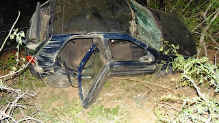 perdeu o controle da direção, desceu a ribanceira, capotou e bateu numa