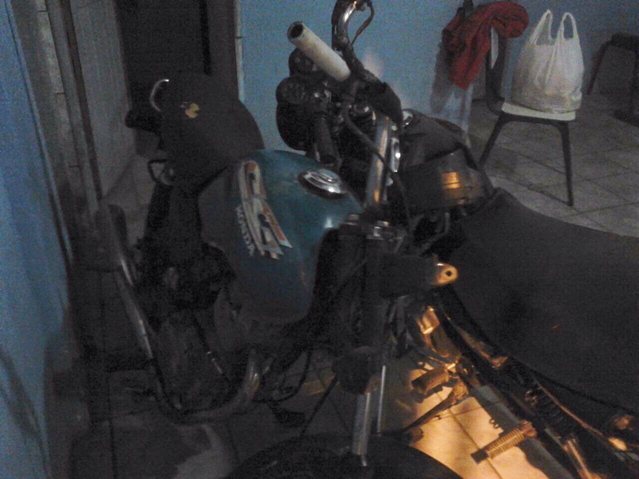 A polícia recebeu uma informação anônima, informando que Iago estaria com uma moto roubada em uma residência. O mesmo assumiu, a polícia foi até a casa e encontrou uma moto Honda Titan CG 125, de cor verde, sem placa e sem documento, roubada.