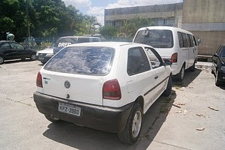 foram flagrados com um veículo VW Gol de cor branca, roubado.