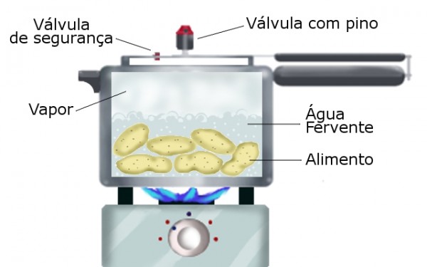 Observe a representação esquemática de uma panela de pressão logo abaixo: