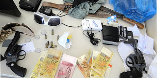 Numa ação rápida do Pelotão da Polícia Militar de Prado, foram presos cinco homens suspeitos de estarem planejando assaltos no município e região. Com o bando foram apreendidos dois revólveres de calibres 32 e 38, dinheiro e droga. Estão presos na Delegacia da Polícia Civil de Prado (DEPOL), Enevaldo Alves, de 21 anos de idade, Anderson Luís Terra Pereira, 39 anos, Alexandre Silva Pereira, de 19 anos, Evaneide de Jesus Fernandes, 21 anos e Jeferson Terra Pereira, 18 anos, Segundo informou o tenente Samuel Santa Bárbara, comandante do Pelotão da Polícia Militar de Prado, quatro dos cinco acusados pertenceriam a uma mesma família já conhecida da polícia de Eunápolis, de onde os presos são originários. Somente Evaneide de Jesus Fernandes, de 21 anos de idade, é morador de Itamaraju. Os presos devem ser indiciados por formação de quadrilha e porte ilegal de arma de fogo. Eles permanecerão presos à disposição da Justiça.