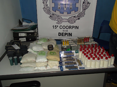 cartuchos e farto material que provavelmente seriam utilizados para a