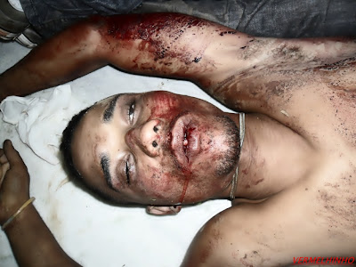 sendo os cinco homens alvejados em várias partes. Numa estrada vicinal,